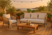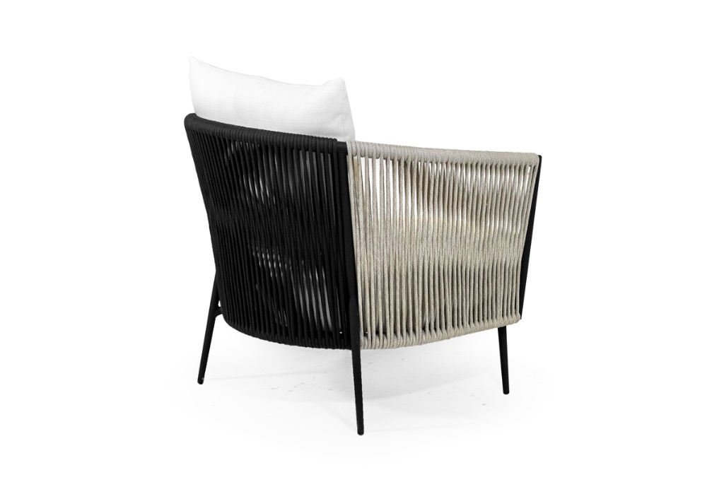 Die aus Polypropylen gefertigte Kordel ist wetterbeständig und sorgt auch im Außenbereich für Langlebigkeit und Schönheit. Das Aluminiumgestell verleiht jedem Element Stabilität bei gleichzeitig geringem Gewicht und schützt vor Korrosion.